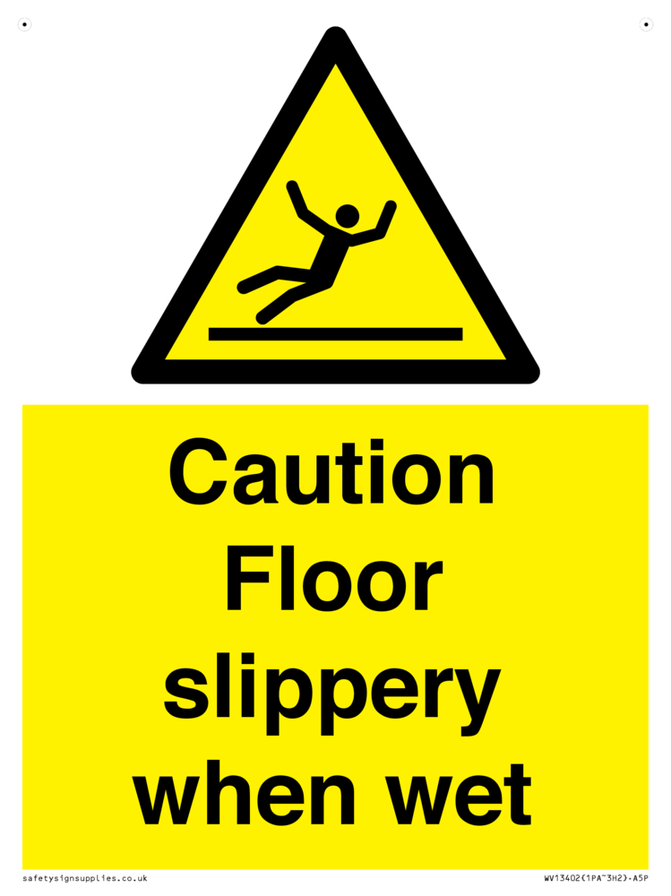 Sign Text: Caution Floor slippery when wet
