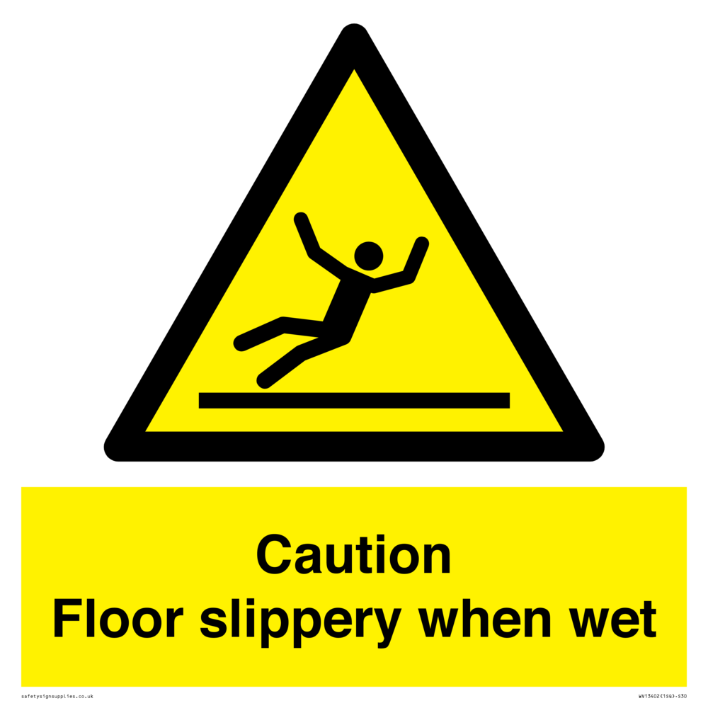 Sign Text: Caution Floor slippery when wet