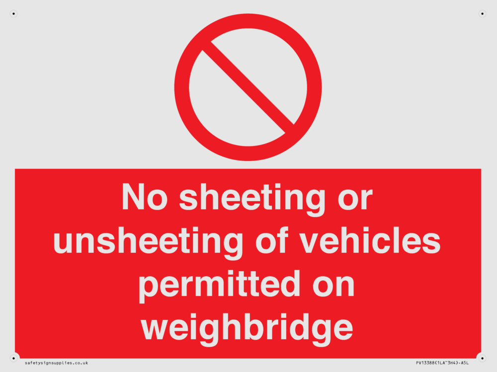 No sheeting or unsheeting of vehicles permitted on weighbridge Sign