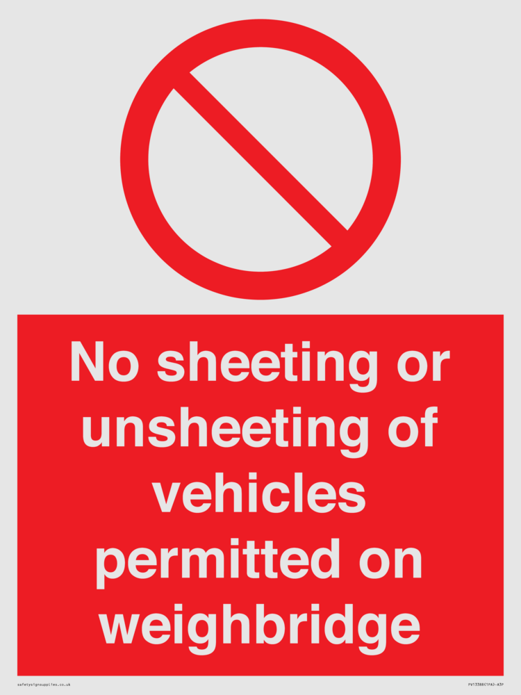 No sheeting or unsheeting of vehicles permitted on weighbridge Sign