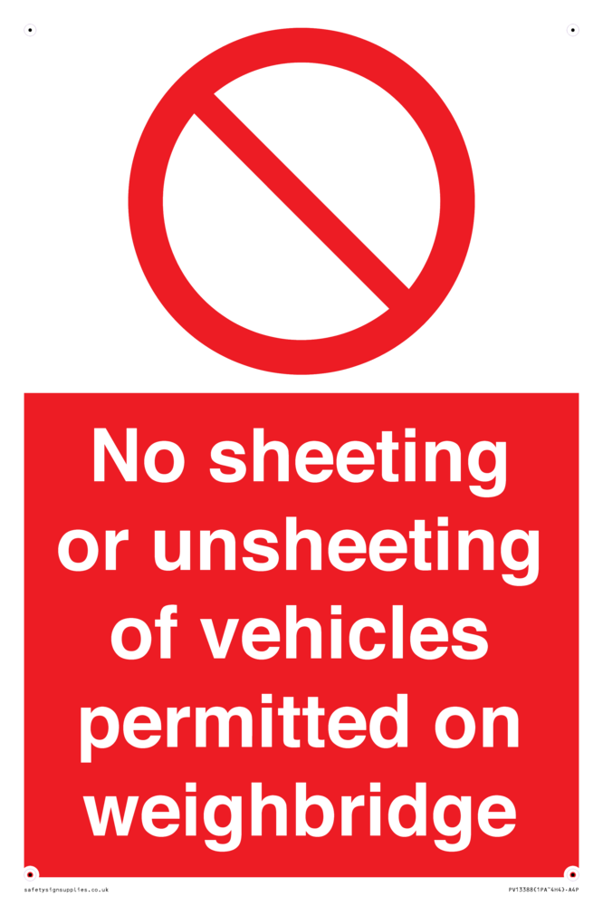 No sheeting or unsheeting of vehicles permitted on weighbridge Sign