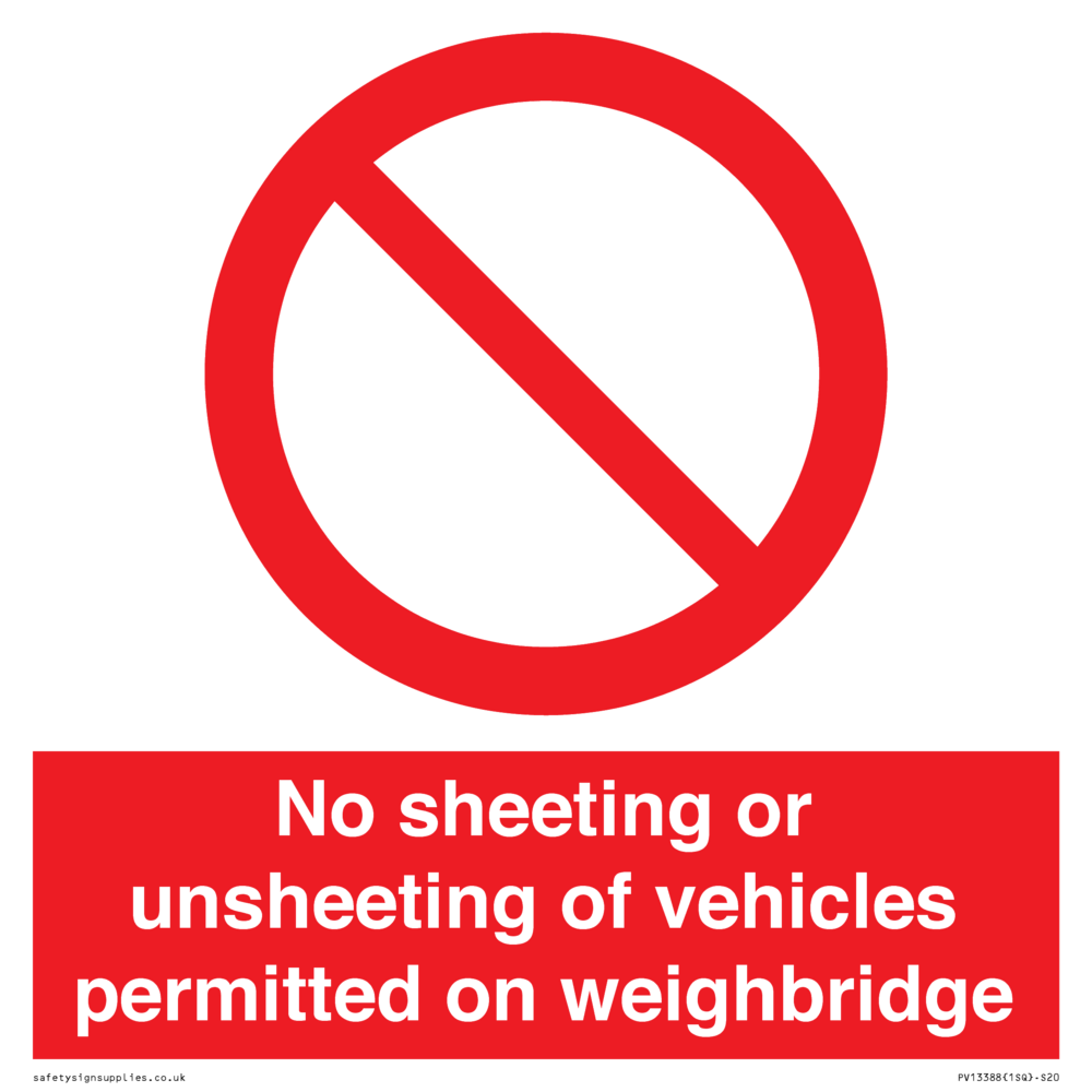 No sheeting or unsheeting of vehicles permitted on weighbridge Sign