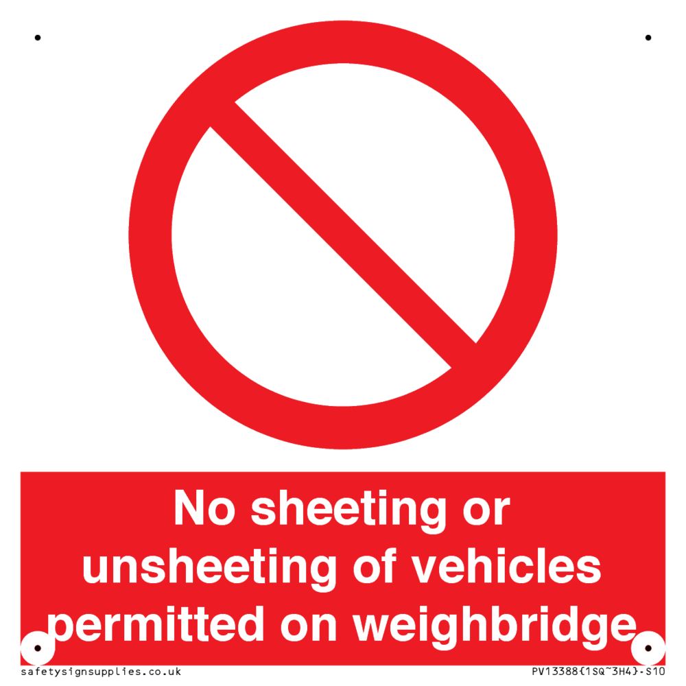 No sheeting or unsheeting of vehicles permitted on weighbridge Sign
