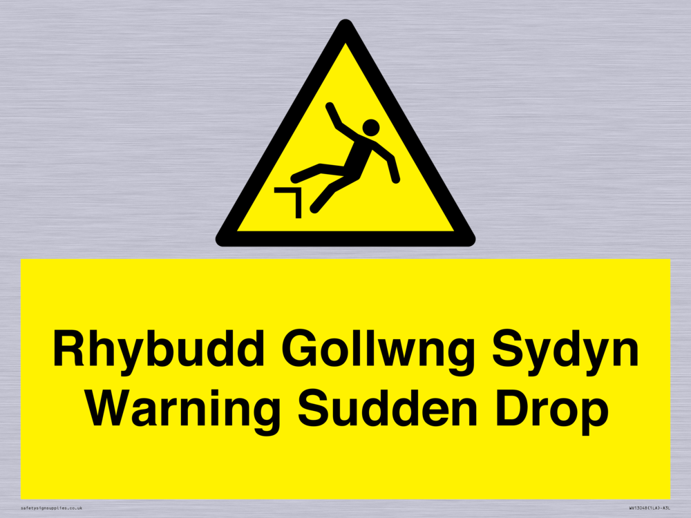 Rhybudd Gollwng Sydyn Warning Sudden Drop Sign