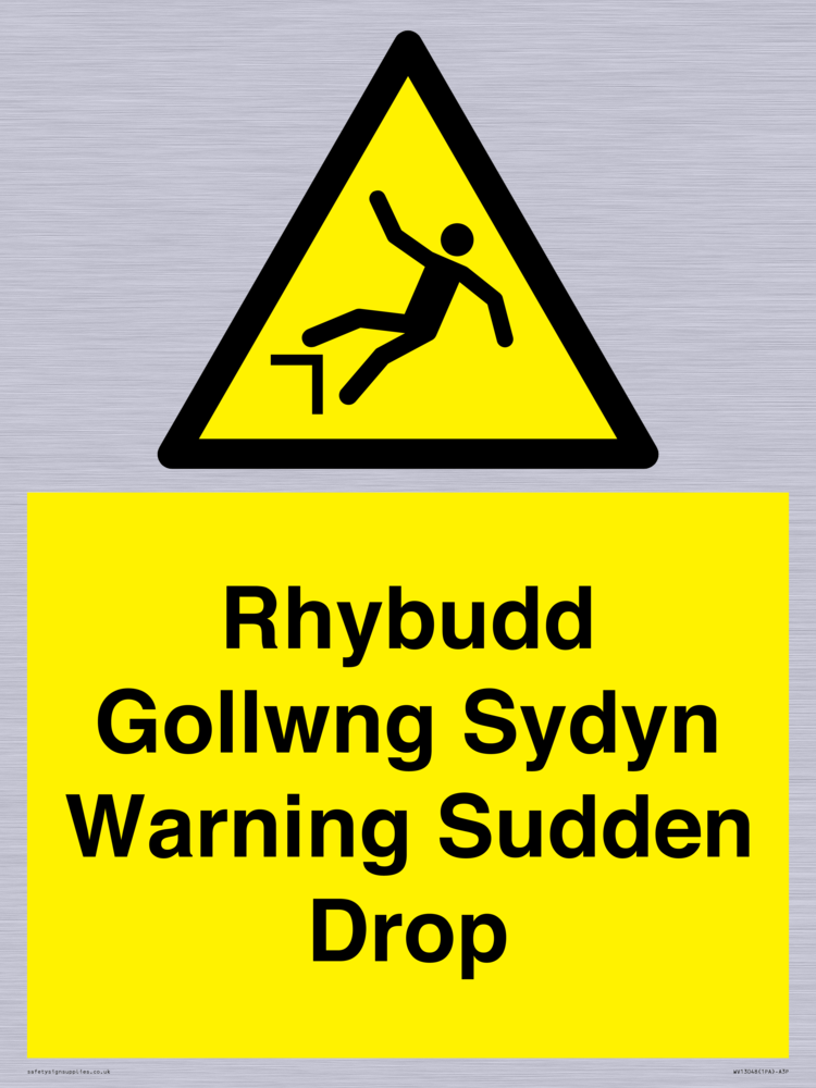 Rhybudd Gollwng Sydyn Warning Sudden Drop Sign
