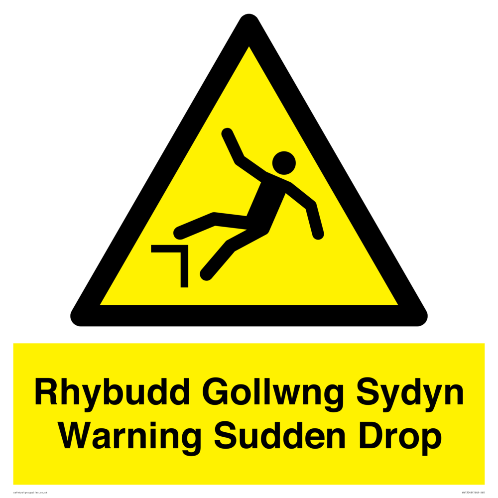 Rhybudd Gollwng Sydyn Warning Sudden Drop Sign