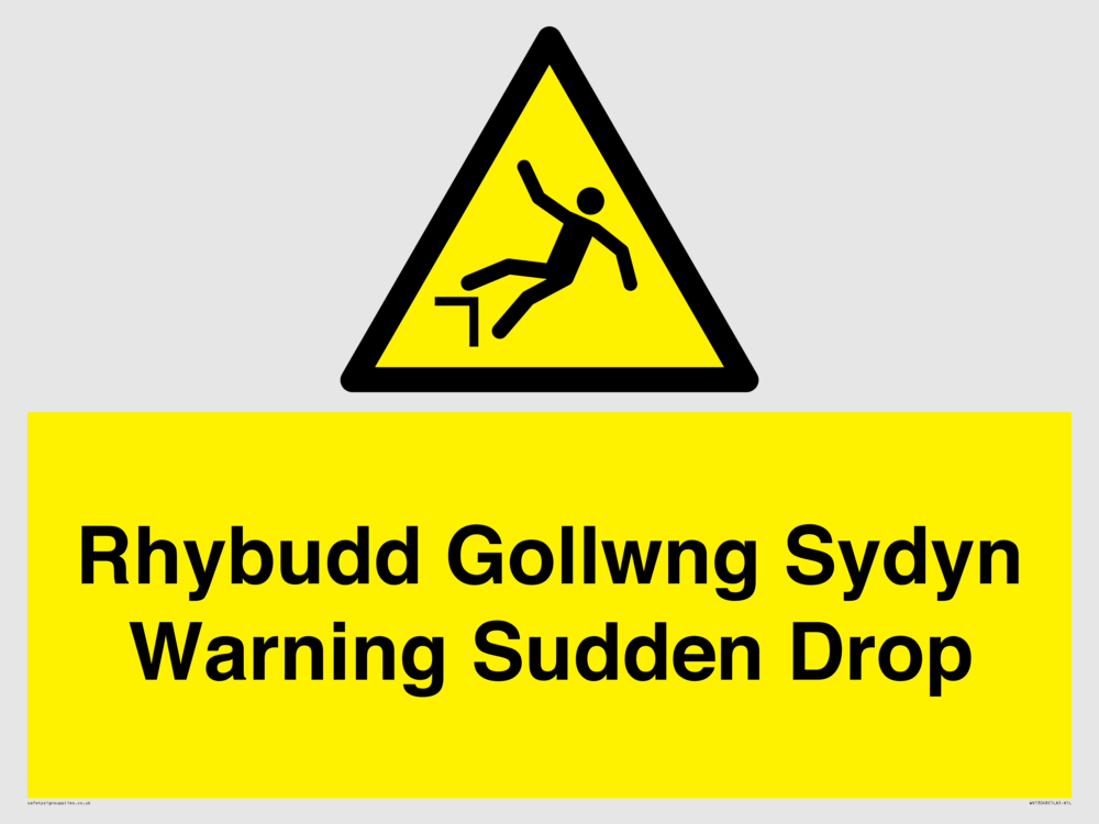 Rhybudd Gollwng Sydyn Warning Sudden Drop Sign