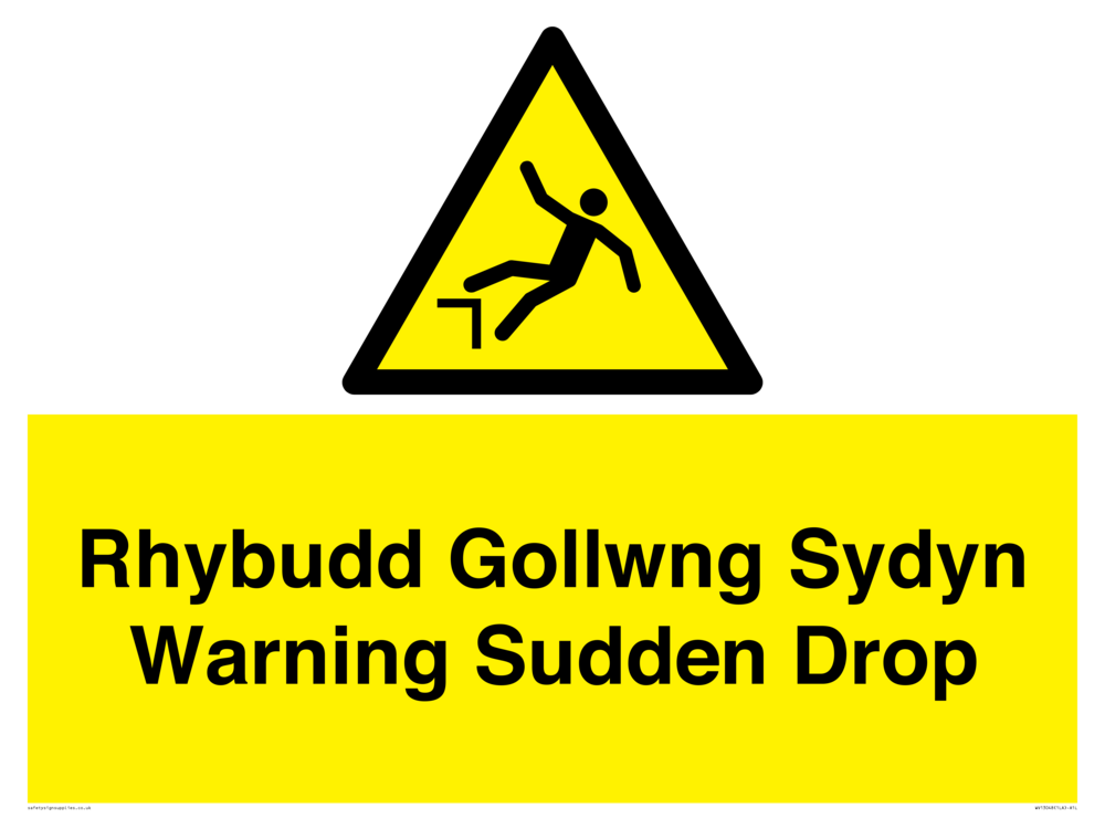 Rhybudd Gollwng Sydyn Warning Sudden Drop Sign