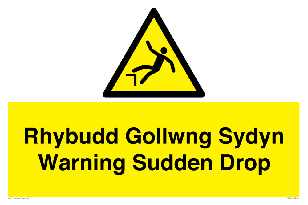 Rhybudd Gollwng Sydyn Warning Sudden Drop Sign