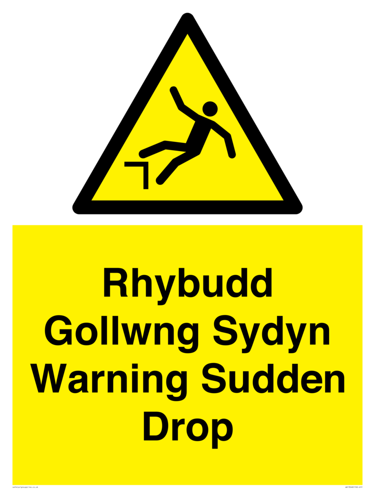 Rhybudd Gollwng Sydyn Warning Sudden Drop Sign