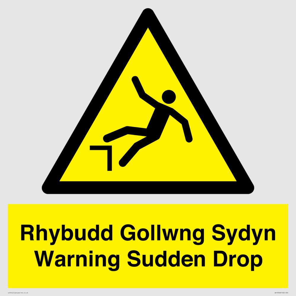 Rhybudd Gollwng Sydyn Warning Sudden Drop Sign