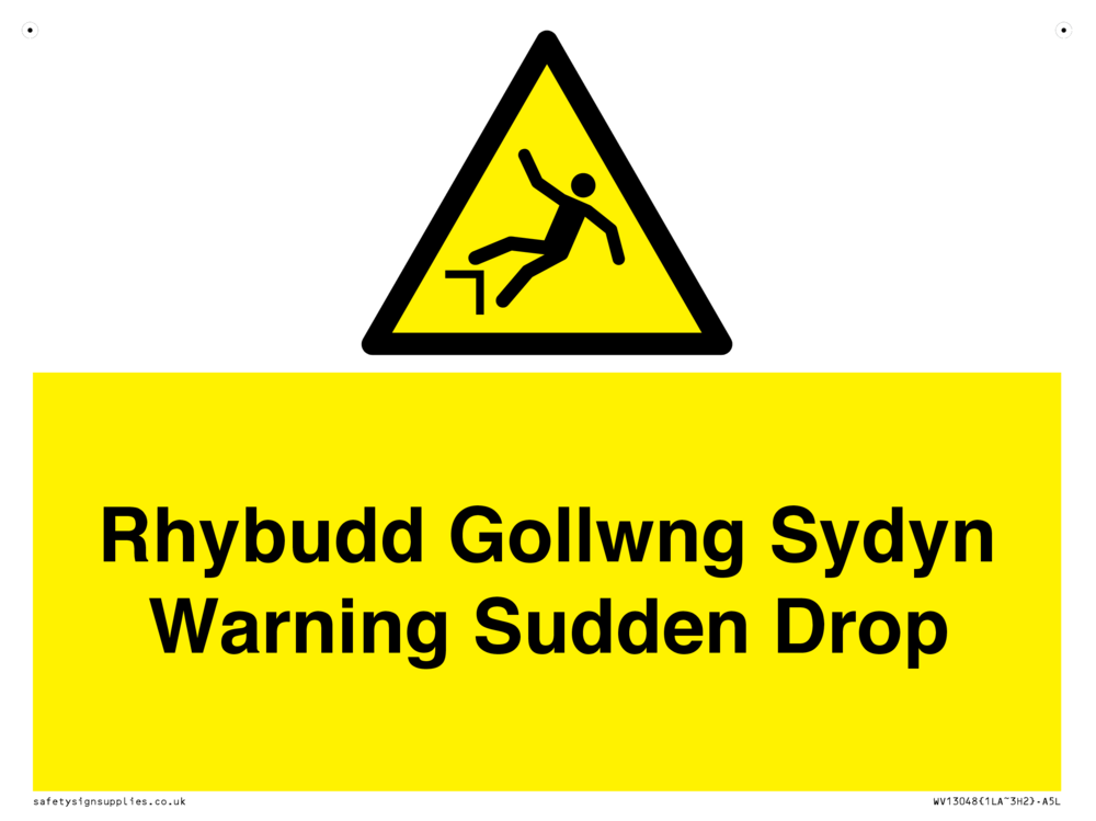 Rhybudd Gollwng Sydyn Warning Sudden Drop Sign