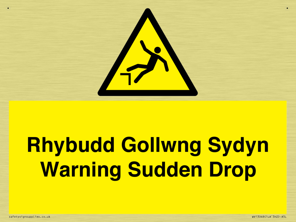 Rhybudd Gollwng Sydyn Warning Sudden Drop Sign