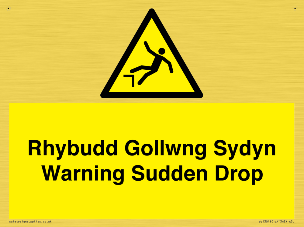 Rhybudd Gollwng Sydyn Warning Sudden Drop Sign