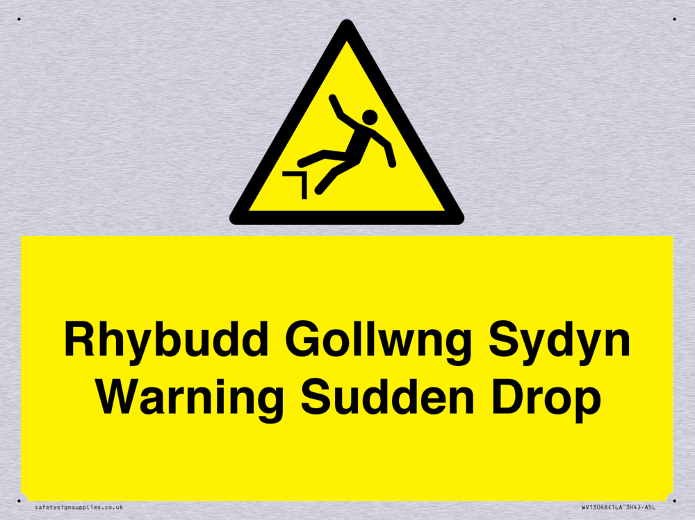 Rhybudd Gollwng Sydyn Warning Sudden Drop Sign