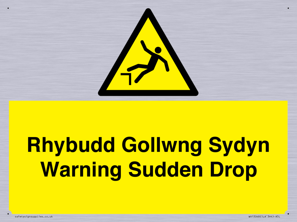 Rhybudd Gollwng Sydyn Warning Sudden Drop Sign