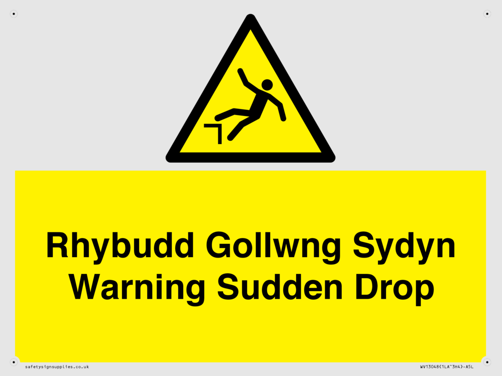 Rhybudd Gollwng Sydyn Warning Sudden Drop Sign