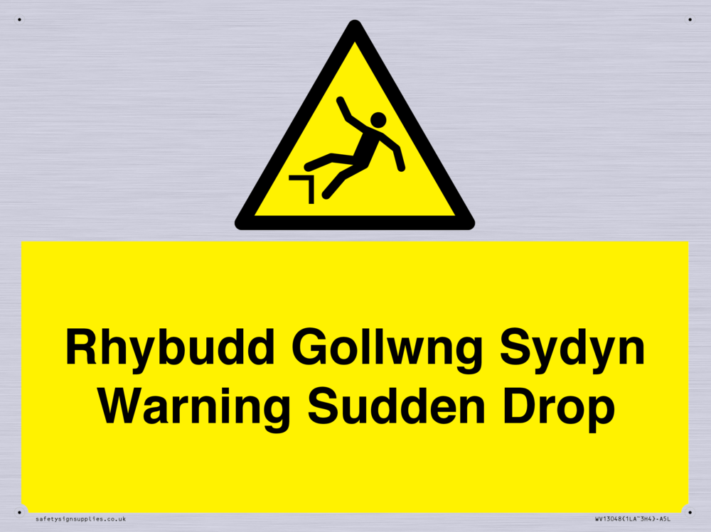 Rhybudd Gollwng Sydyn Warning Sudden Drop Sign