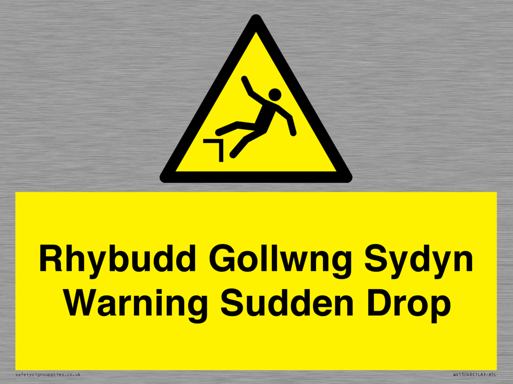 Rhybudd Gollwng Sydyn Warning Sudden Drop Sign