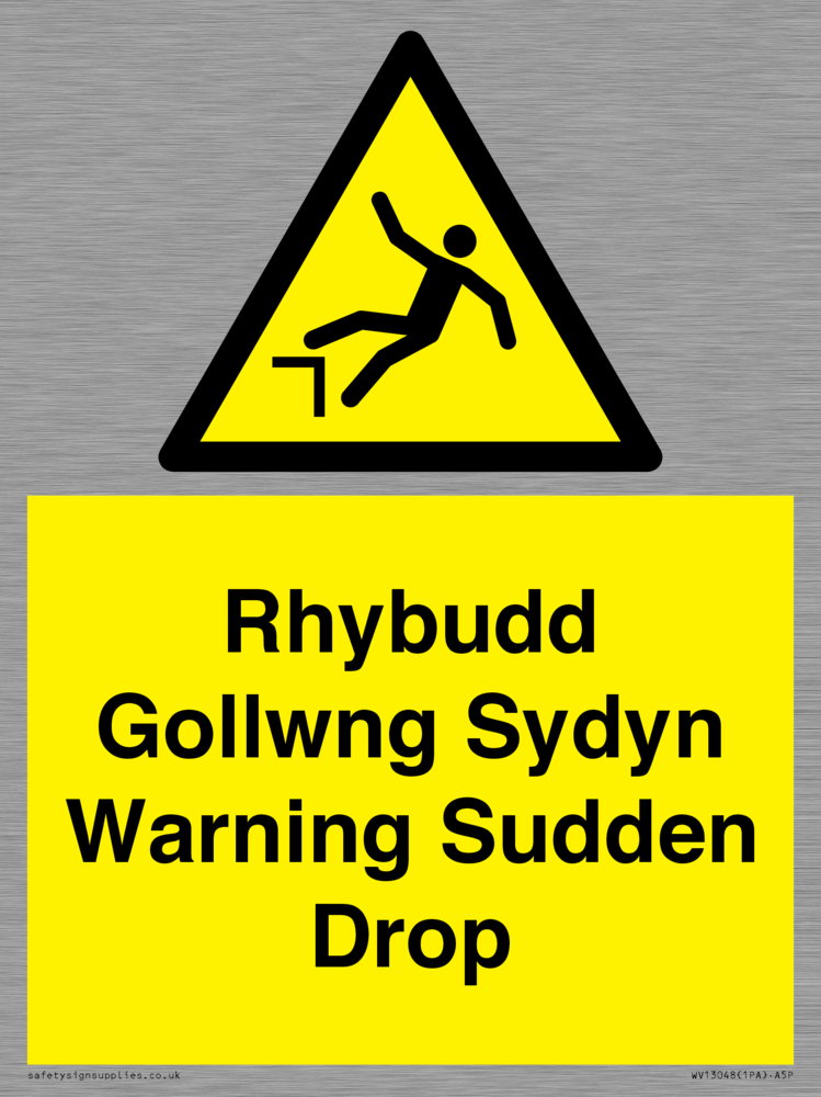 Rhybudd Gollwng Sydyn Warning Sudden Drop Sign