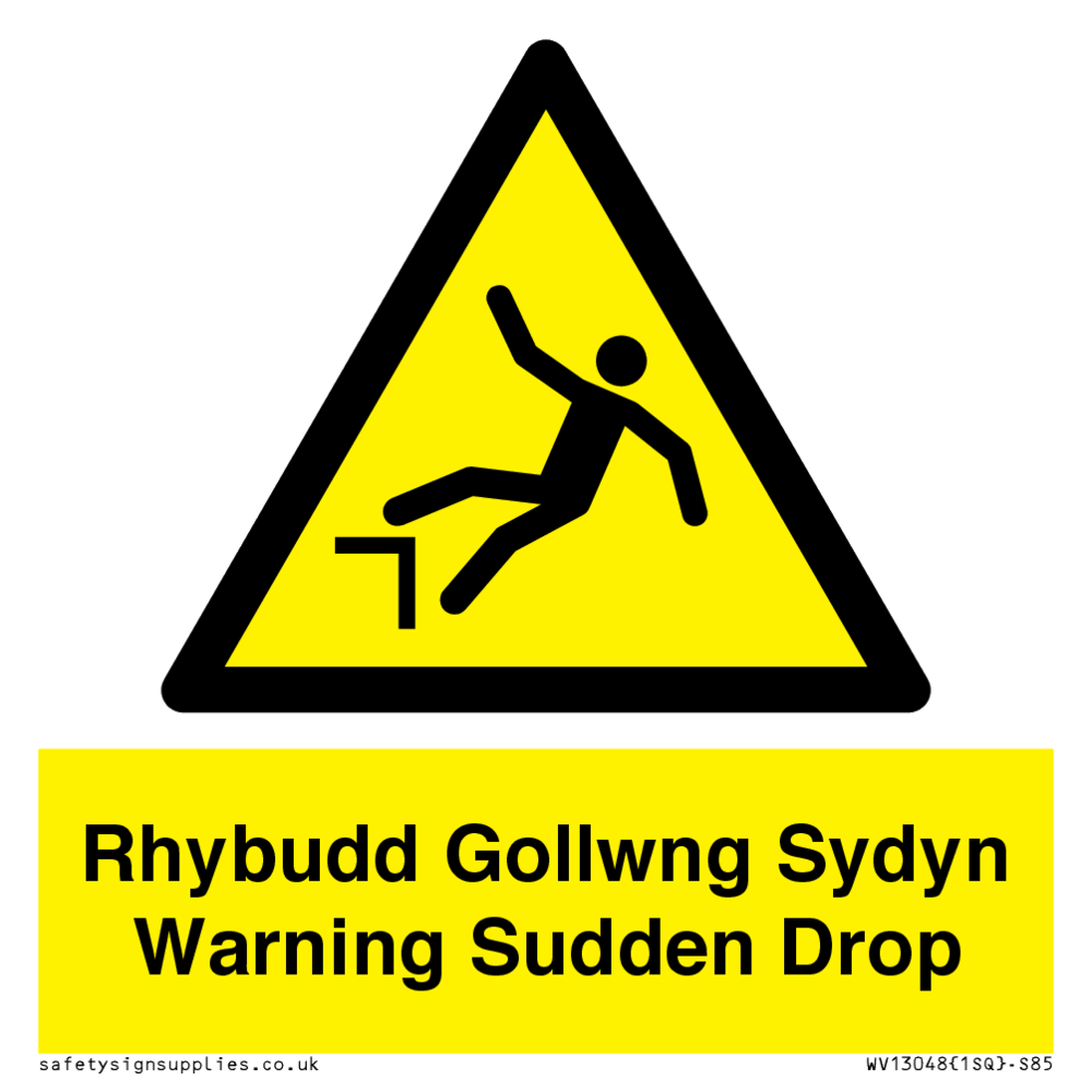 Rhybudd Gollwng Sydyn Warning Sudden Drop Sign