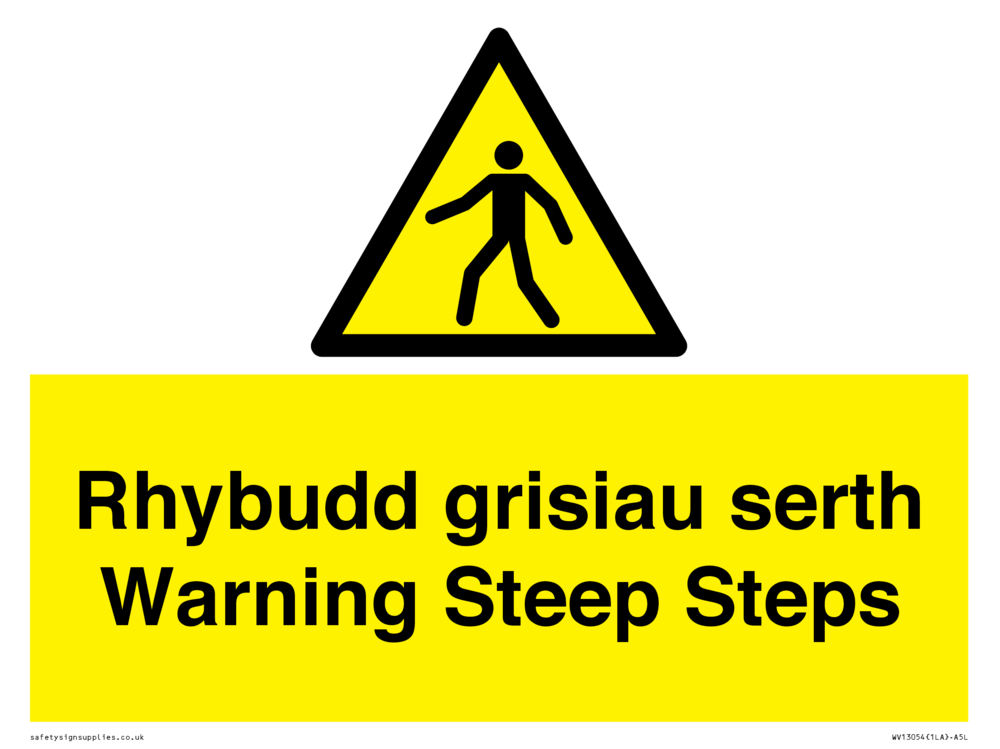 Rhybudd grisiau serth / Warning Steep Steps - Bilingual Welsh / English