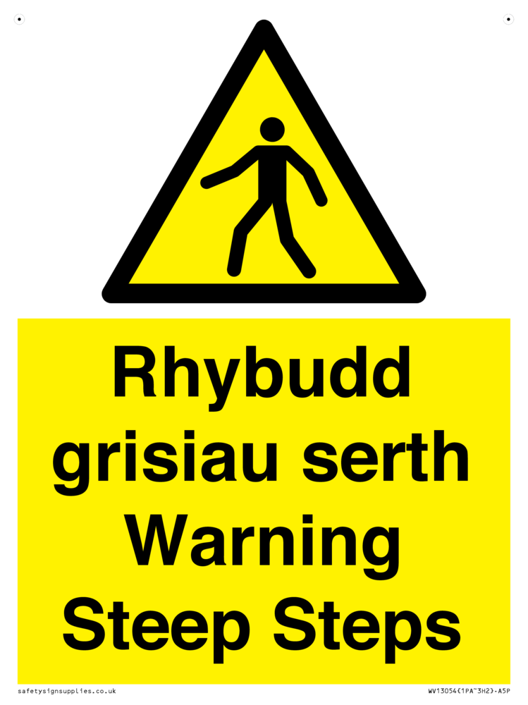 Rhybudd grisiau serth / Warning Steep Steps - Bilingual Welsh / English
