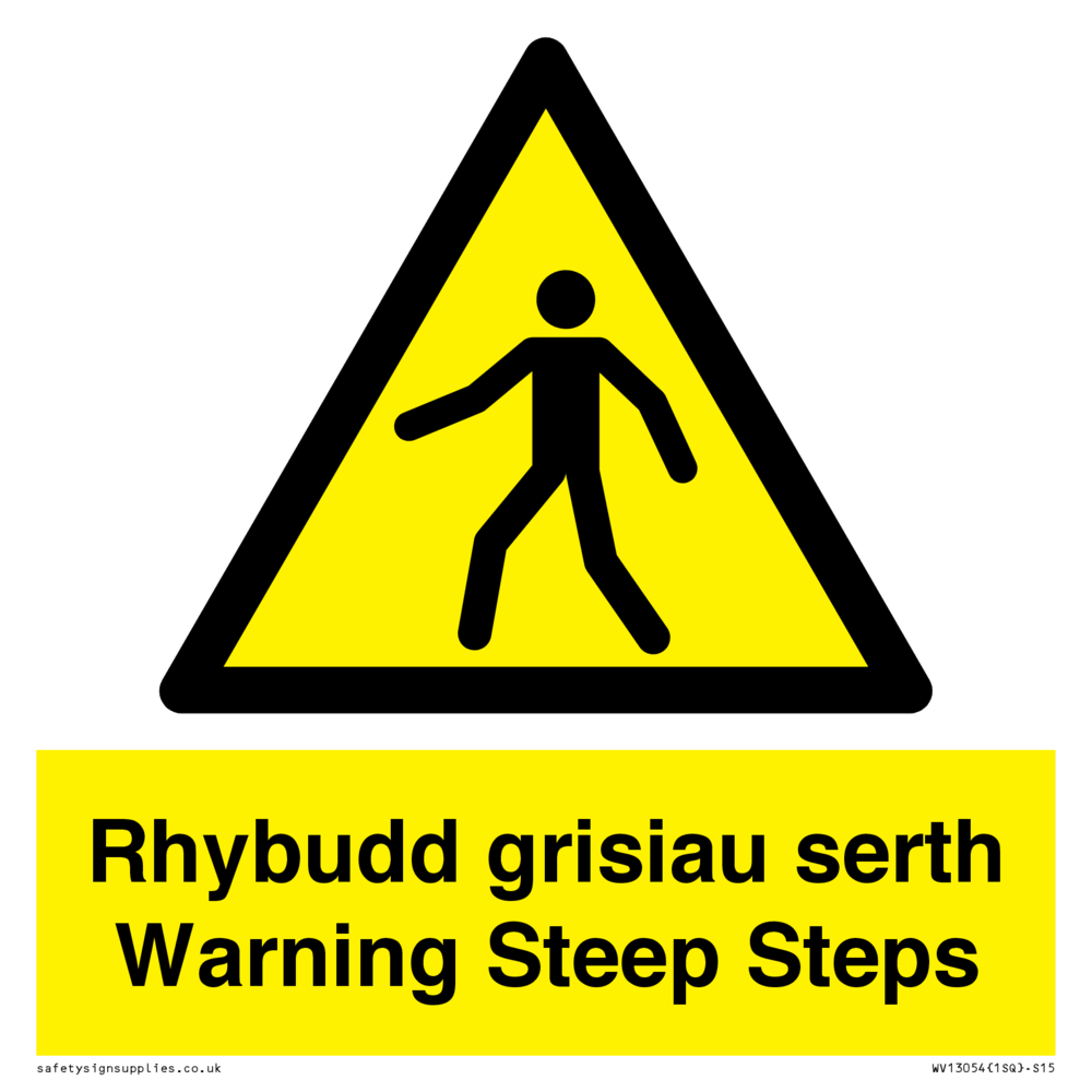 Rhybudd grisiau serth / Warning Steep Steps - Bilingual Welsh / English