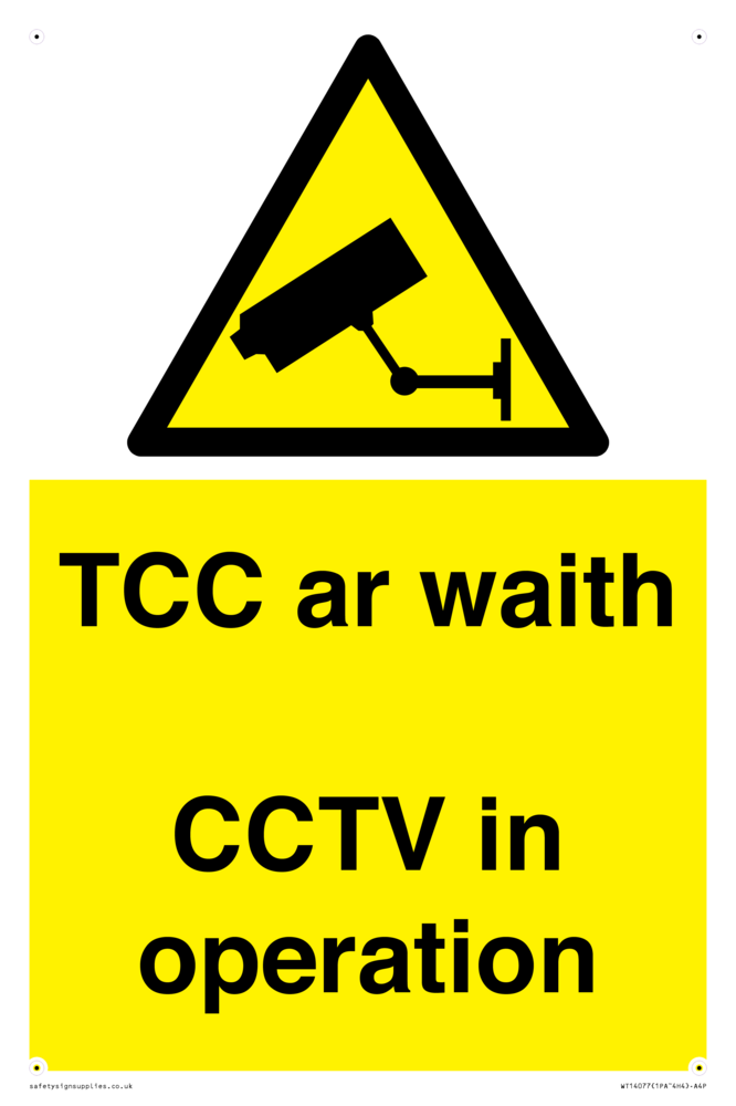 TCC ar waith / CCTV in operation - dual language Welsh / English sign