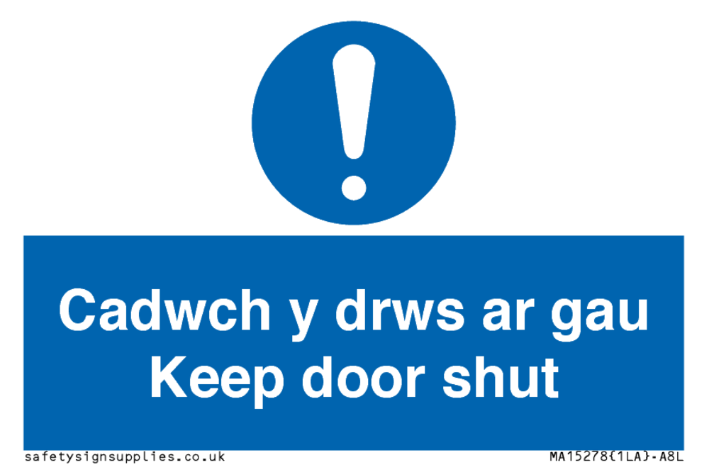 Cadwch y drws ar gau / Keep door shut - Bilingual Welsh / English