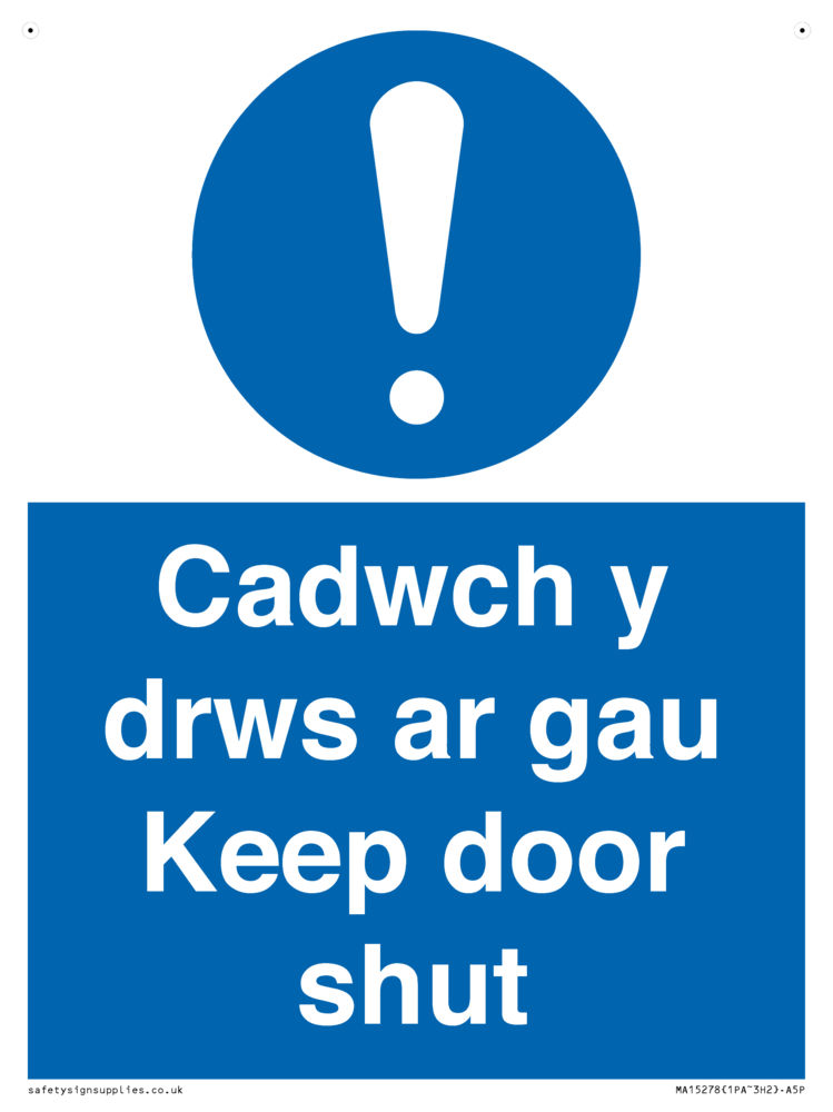 Cadwch y drws ar gau / Keep door shut - Bilingual Welsh / English