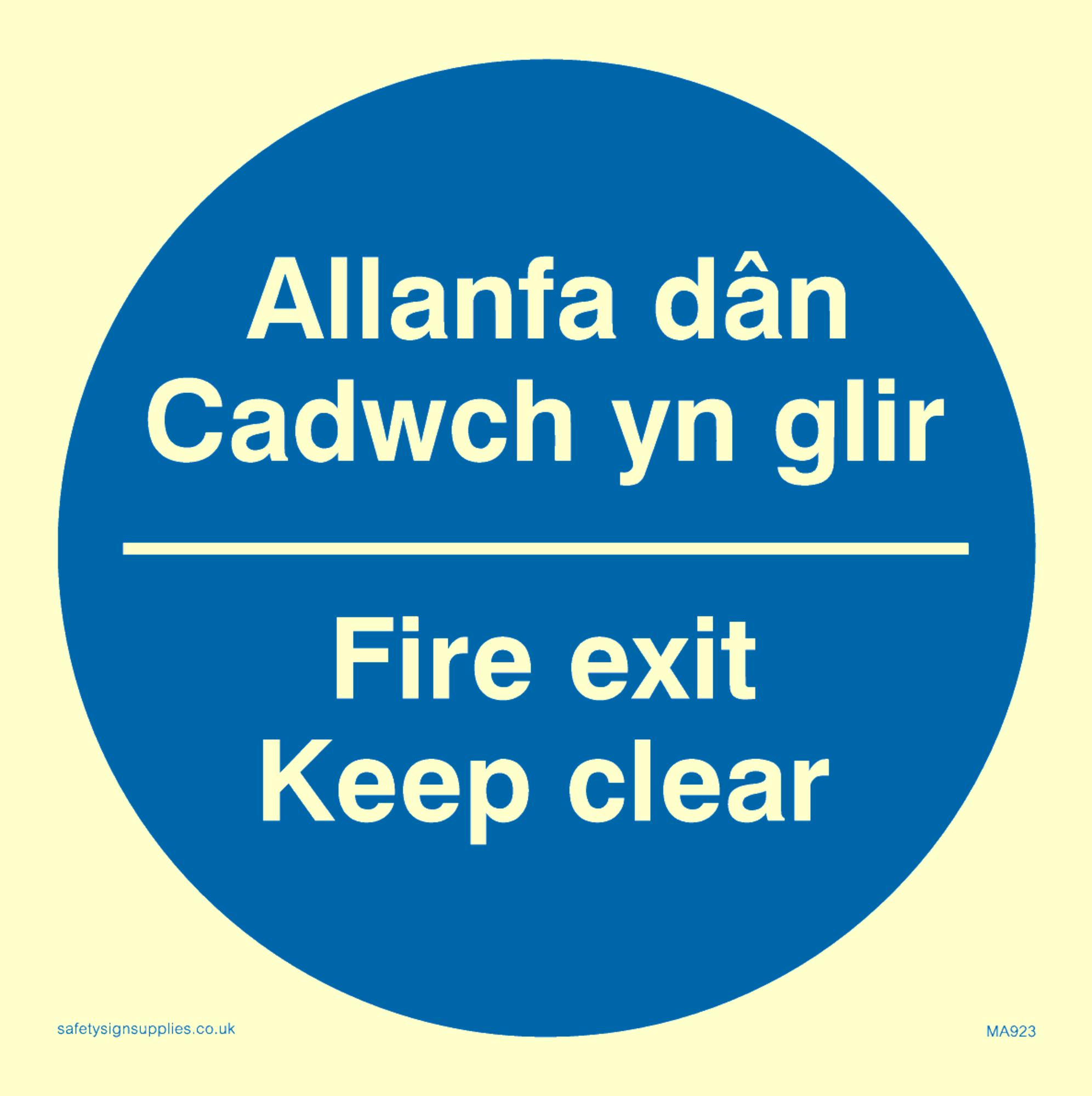bi-lingual sign - welsh / english in blue circle