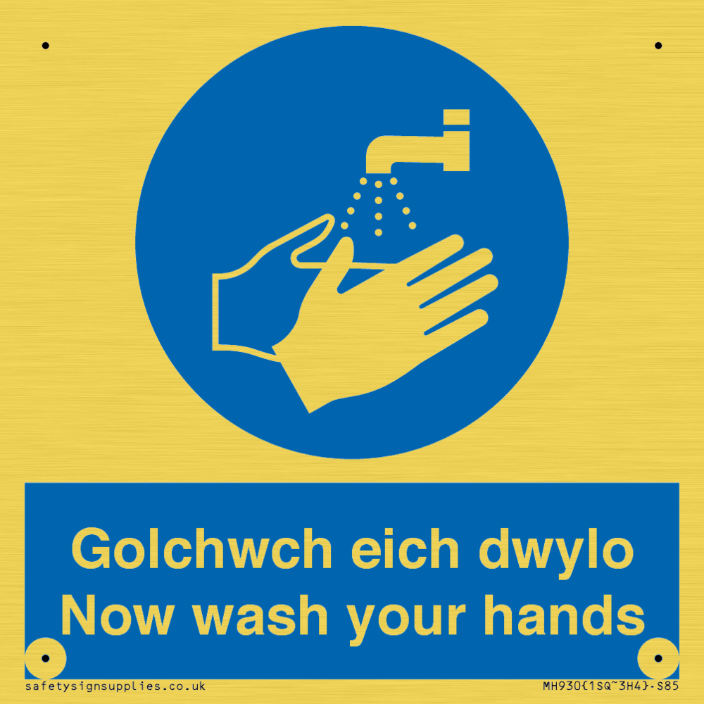 bi-lingual sign - welsh / english with hand wash symbol